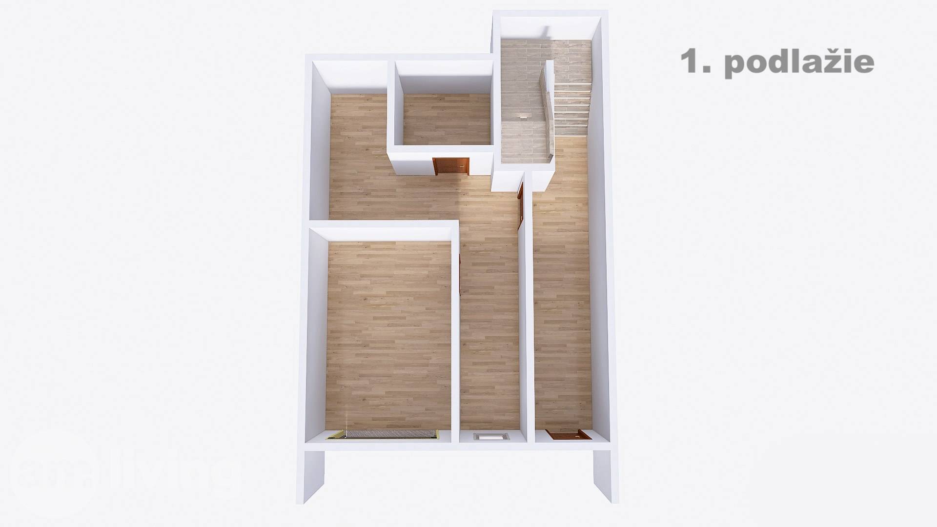 • 1. podlažie 75 m² – vstupná chodba, garáž, sklad, pivnica a technická miestnosť (možnosť úpravy na viac garáží)