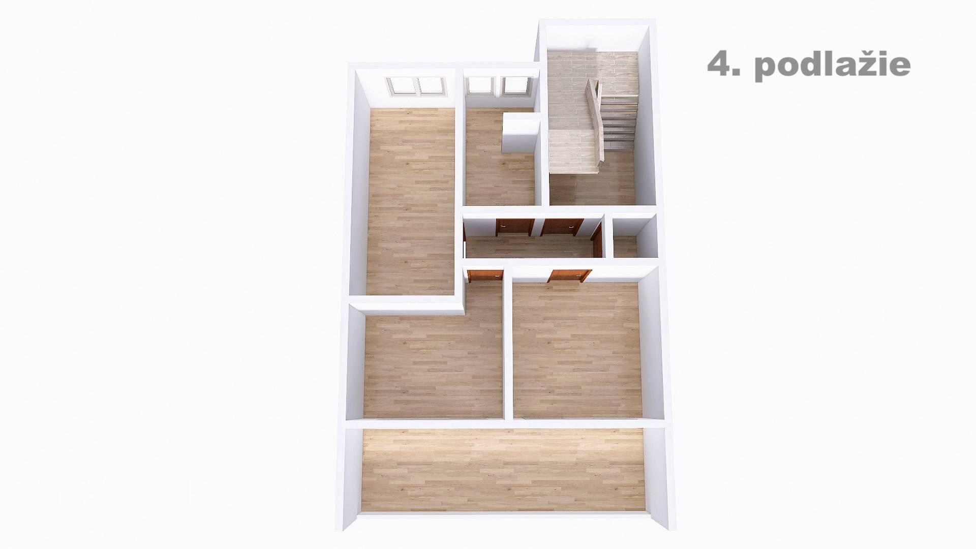 • 4. podlažie 72 m² + 20 m² terasa – samostatný 2-izbový byt s terasou a vlastnou záhradkou